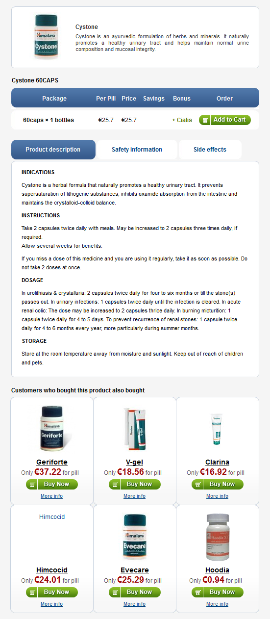 Før du køb Cystone, bedes du læse følgende beskrivelse