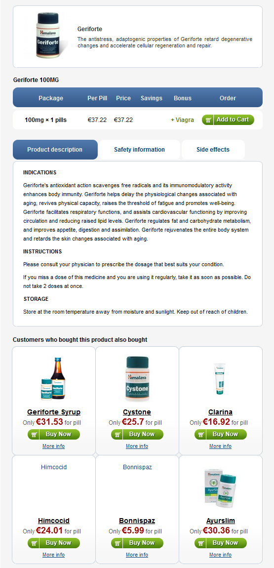 Antistress : Geriforte er en adaptogenic som effektivt bekæmper stress og træthed. Det øger også udholdenhed og forbedrer den generelle ydeevne.