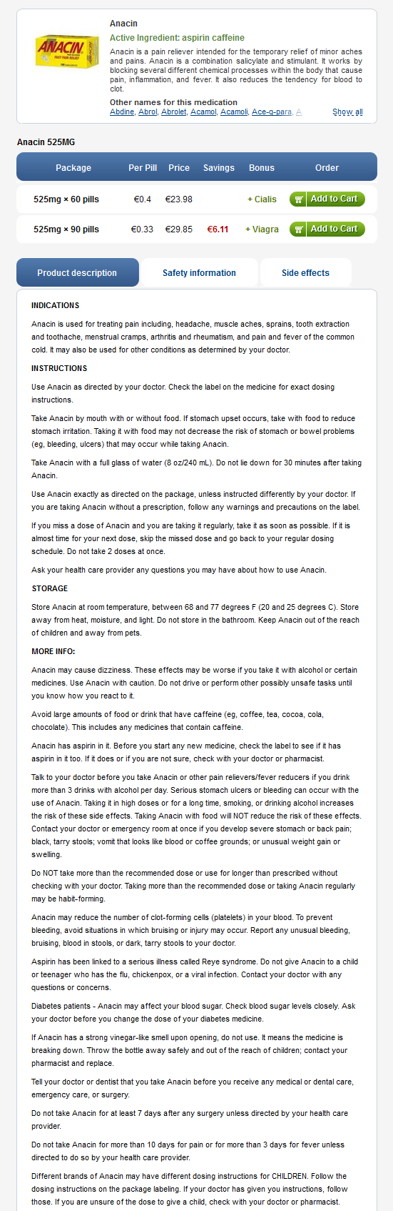 Køb Pinex (Anacin)