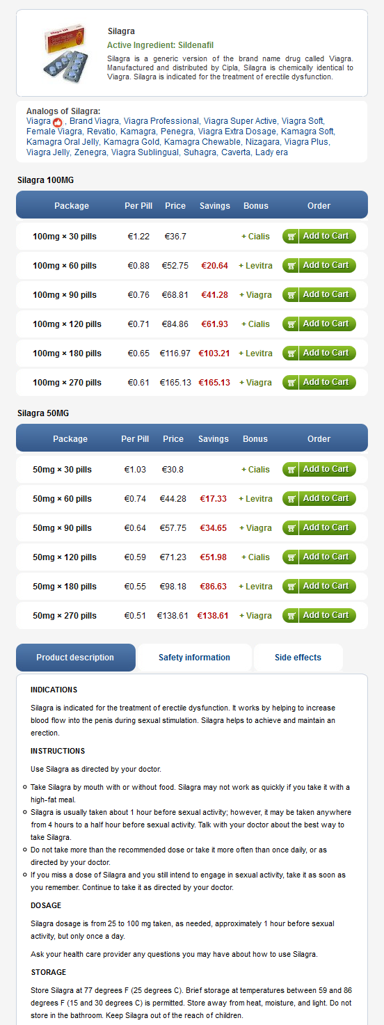 Silagra 100mg tabletter indeholder sildenafil , som løser erektil dysfunktion ( impotens) hos mænd , ved at øge blodgennemstrømningen til penis.