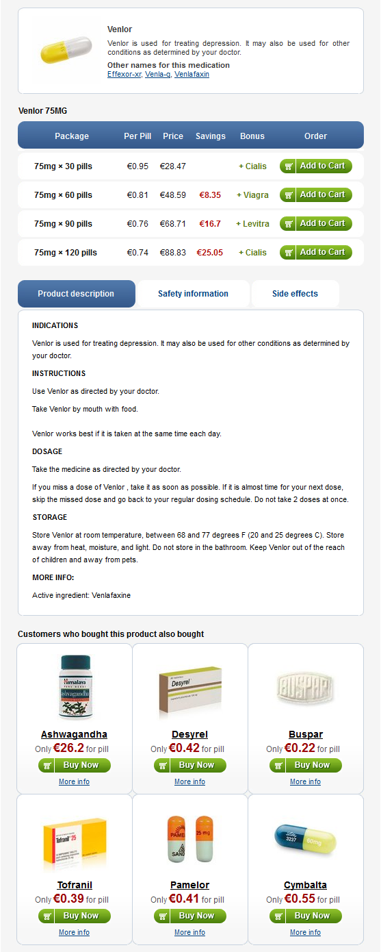 Før du køb Venlor, bedes du læse følgende beskrivelse